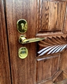 Дверь с массивом, ковкой и стеклом, резьбой, карнизом