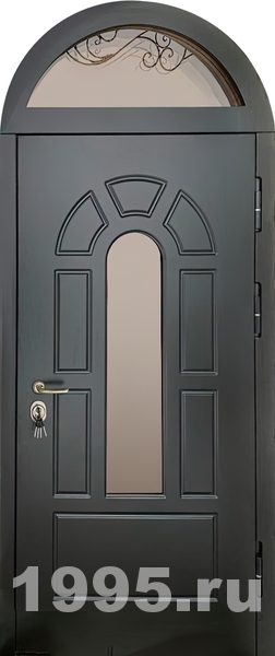 Стальная дверь арочного типа МДФ со вставками, стеклопакетом и решеткой