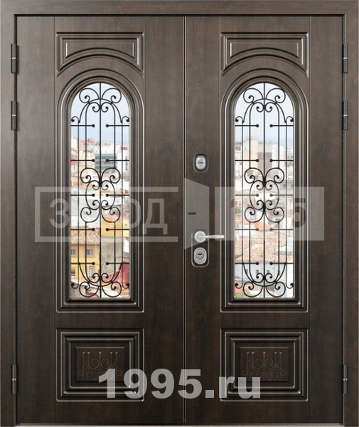 Стальная дверь арочного типа МДФ со вставками, стеклопакетом и решеткой