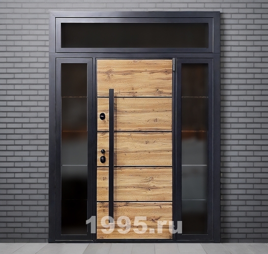Двустворчатая стальная дверь с наборным МДФ окрас по RAL