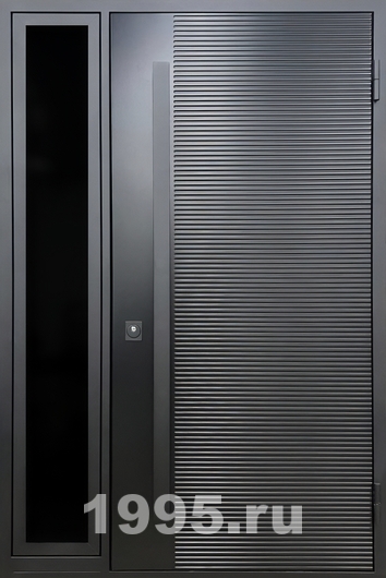 Стальная дверь с серыми панелями МДФ и боковой вставкой со стеклом (терморазрыв)