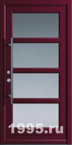 Дверной блок данной модели предназначен для разграничения зон внутри здания. Подобные конструкции устанавливают в офисных помещениях, приёмных, коридорах. Особенность входной двери №5 – четыре стеклянных секции. Они изготовлены по особой технологии, при которой несколько слоёв стекла склеиваются в одно целое.