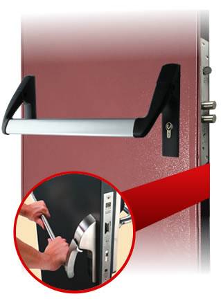 Система «Антипаника» для двери – это специальный замковый механизм, который позволяет открыть дверь изнутри одним нажатием на ручку. Типичными местами установки дверных блоков с такими устройствами являются эвакуационные и аварийные выходы из зданий, предназначенных для посещения большим количеством людей. Данная система может быть смонтирована как на обычной, так и на противопожарной двери.